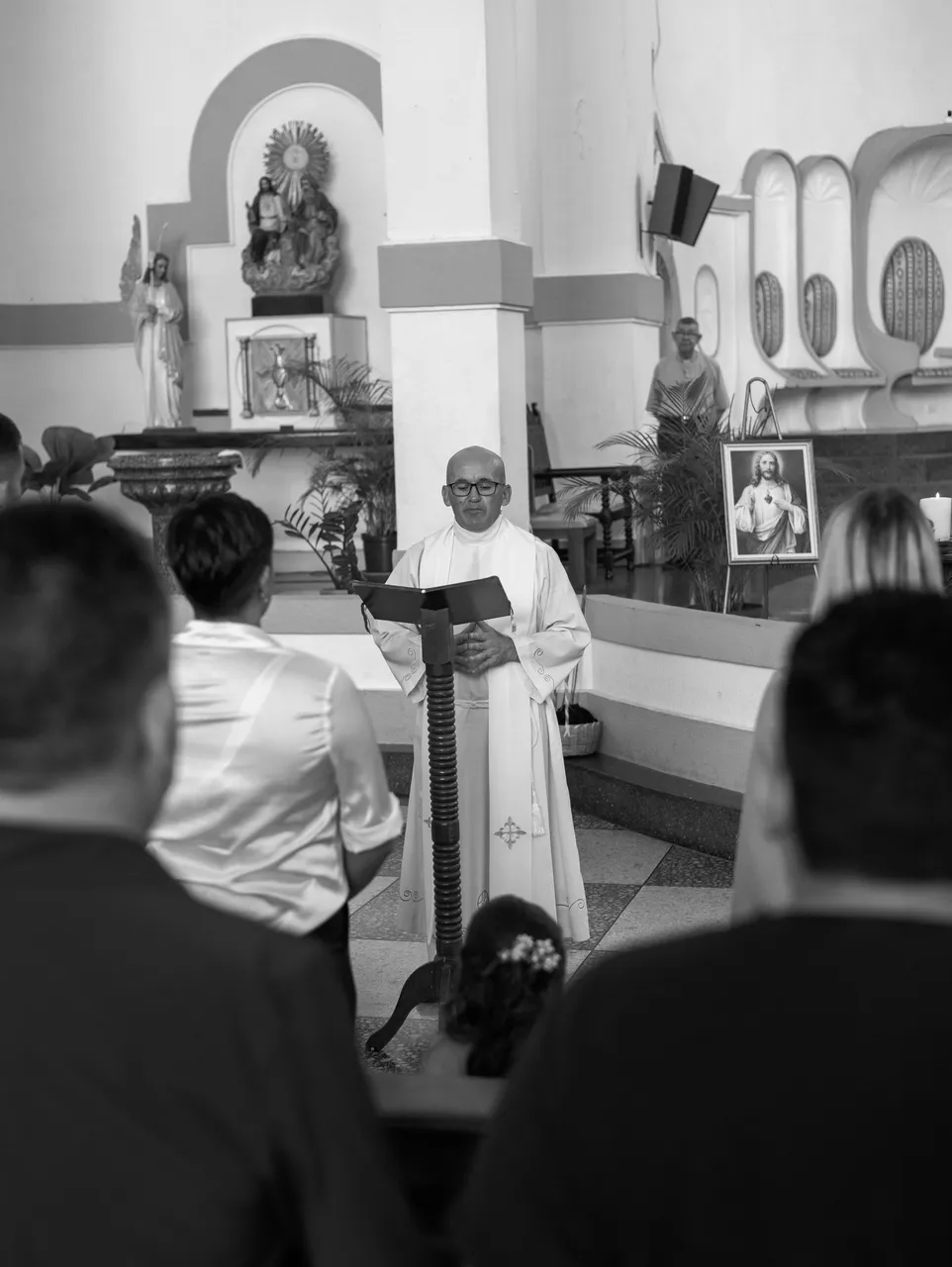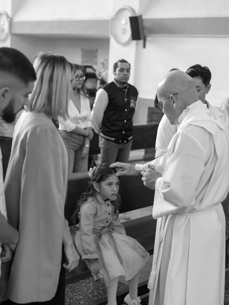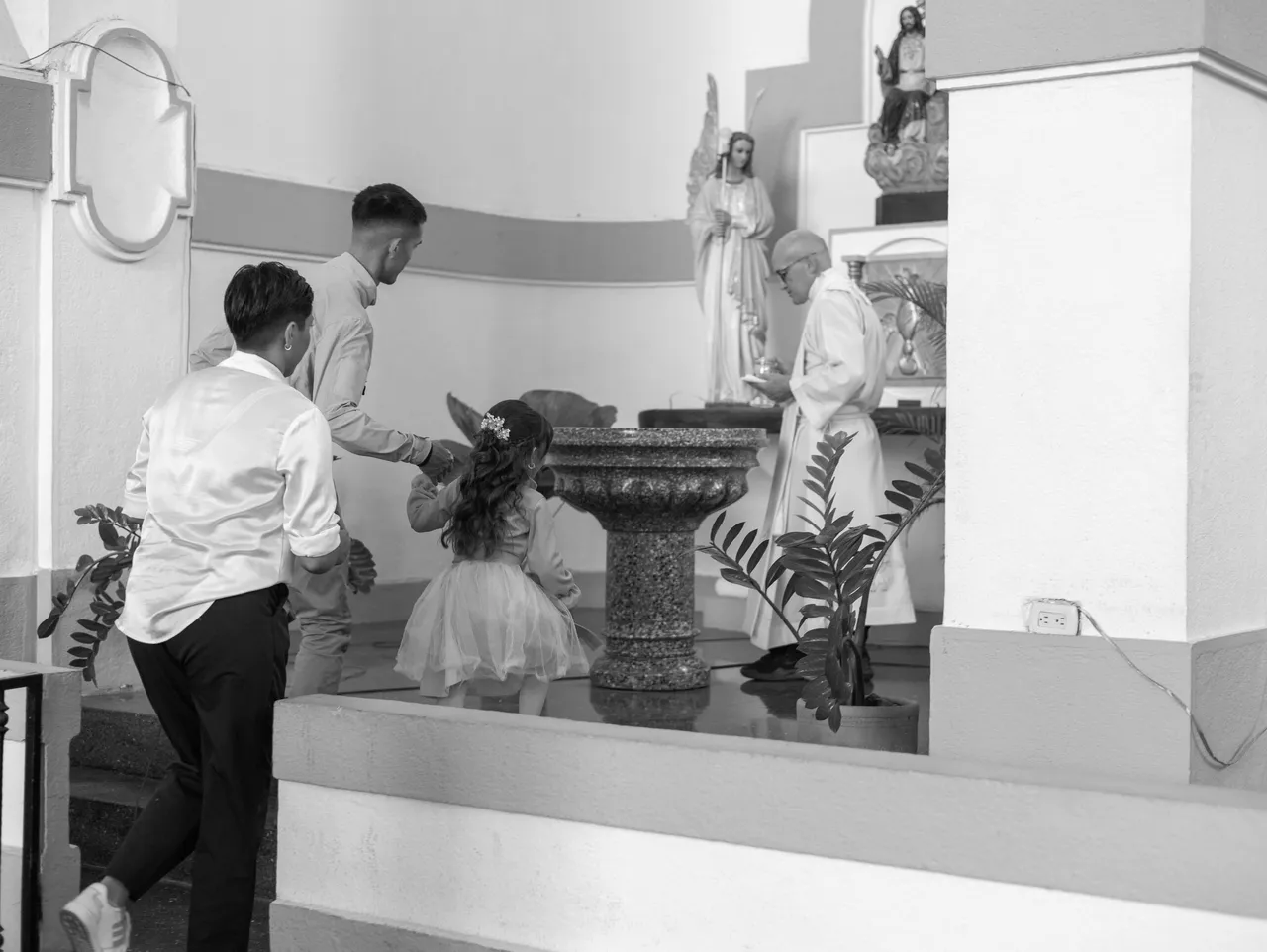 The girl's family and godparents were present at the venue. The priest gave a mass for everyone and then the baptism ceremony began.