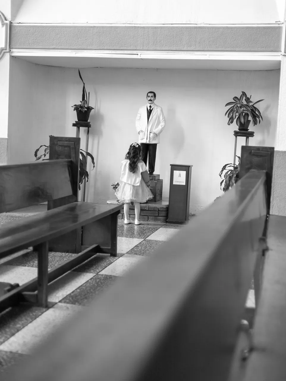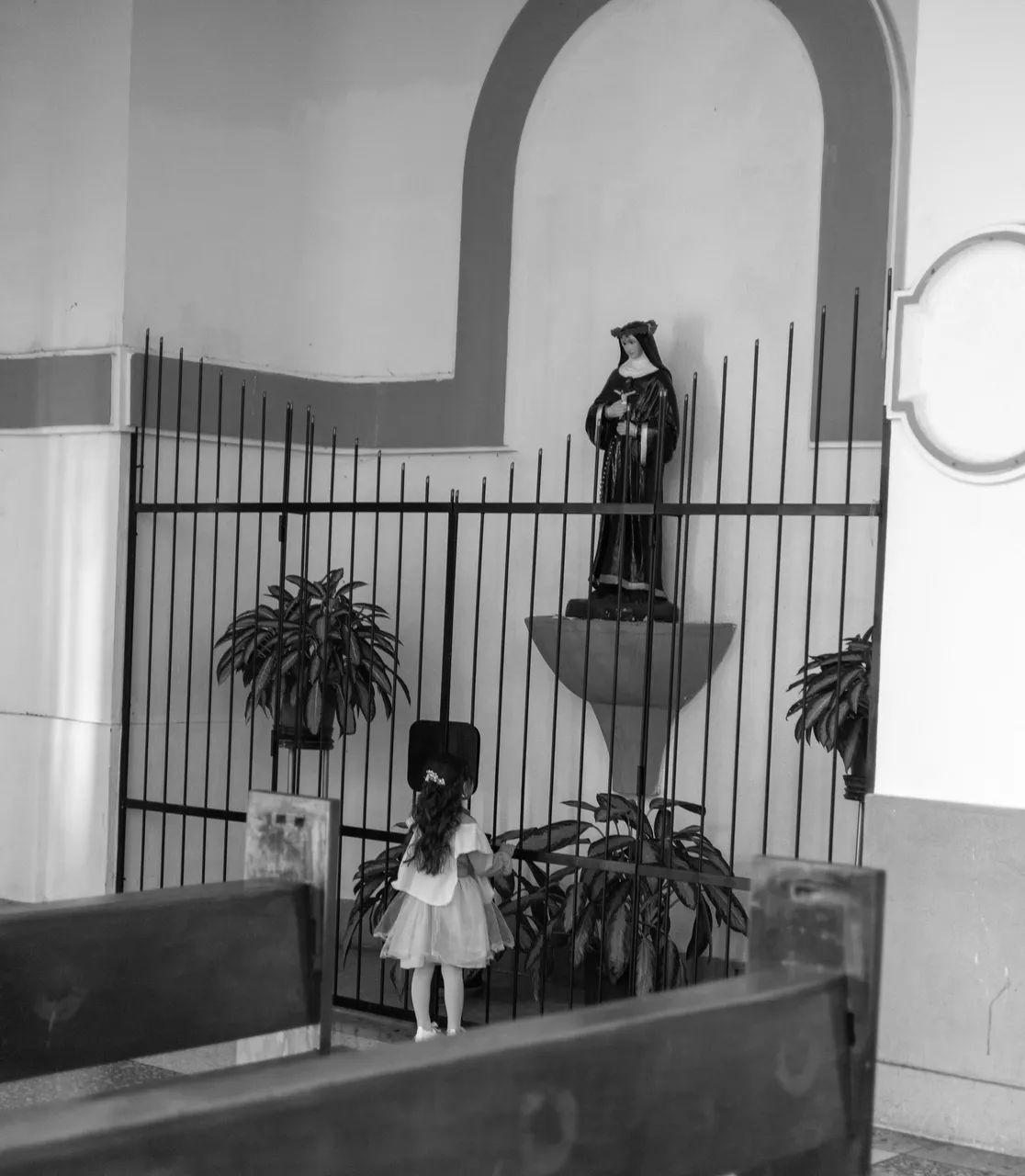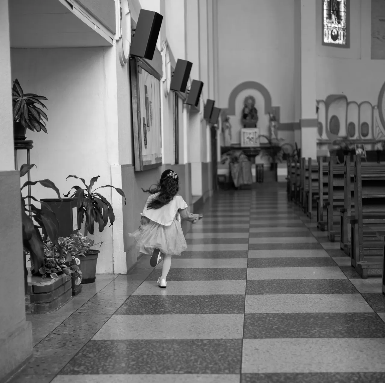 Childrens have a very short attention span and are also very curious, so in a matter of minutes the girl was running all over the church.