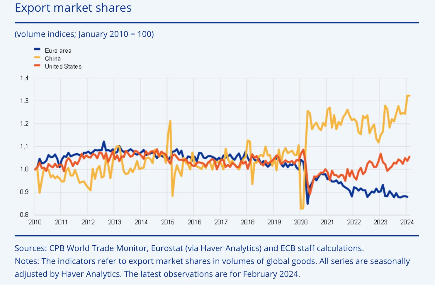In Europe's case, people shifted away from their exports en masse and never switched back, because they were already trending that way.
