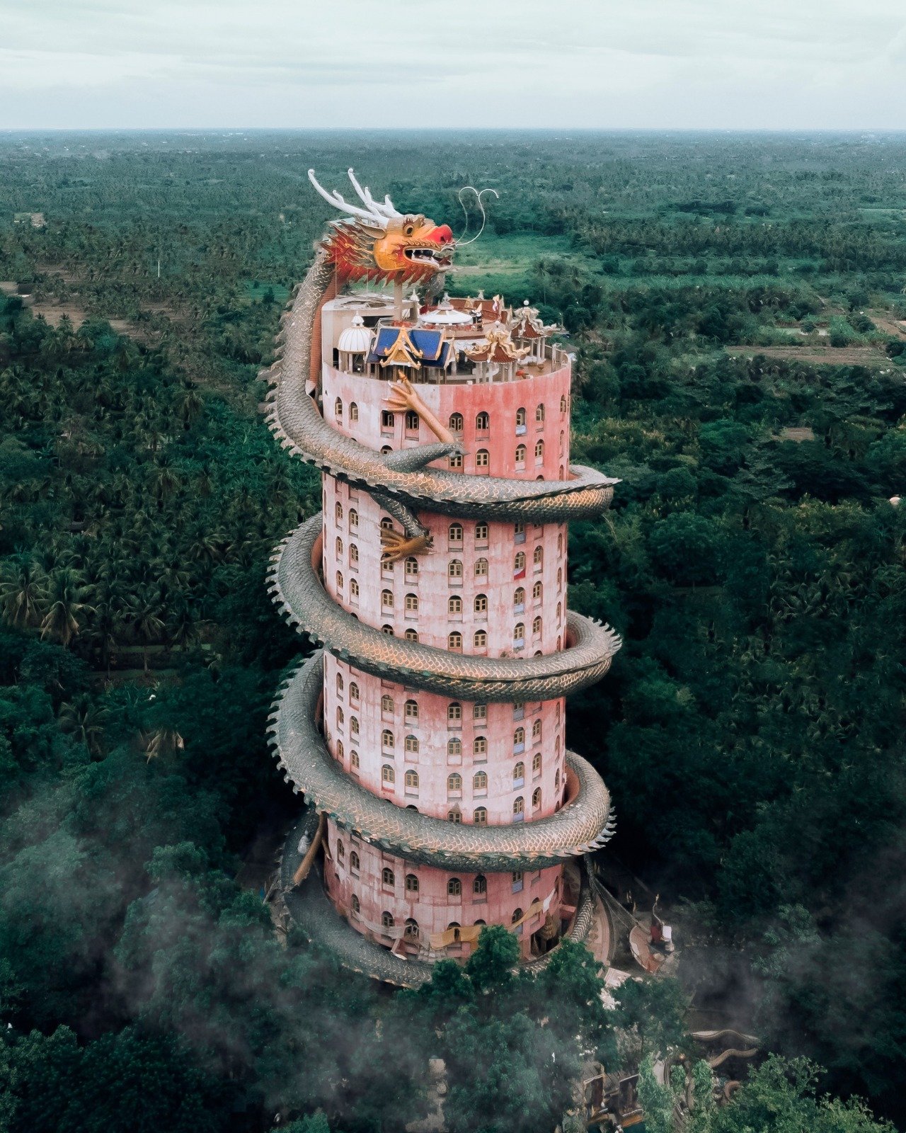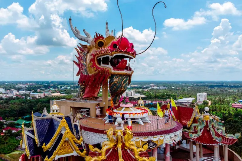 6- Wat Samphran: 17 floors snaked by an 80m long dragon. Its interior is filled with historical Thai works of art and was built in 1985, taking just 5 years to complete.