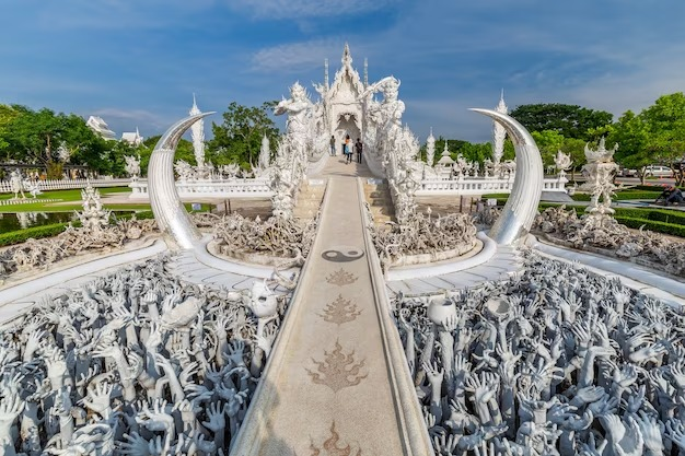 1-Wat Rong Khun: A temple based on rebirth, also known as the White Temple. Built in 97, each part of it represents a religious passage. As it is a nearly entirely Buddhist country, there are more than 33 thousand temples in Thailand.