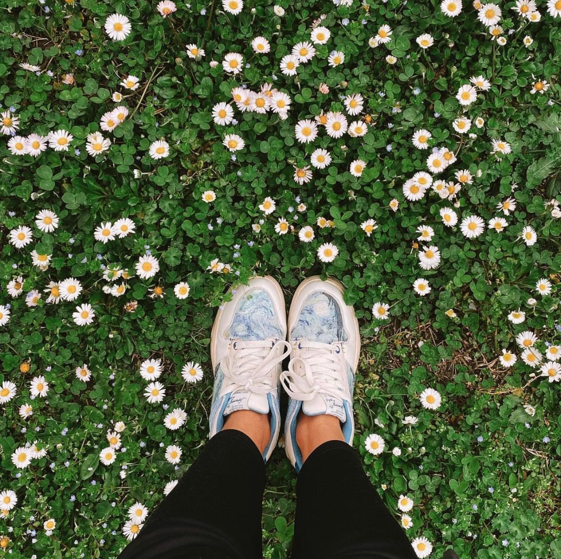Wearing Van Gogh’s The Starry Night on a daisy field in the daylight…