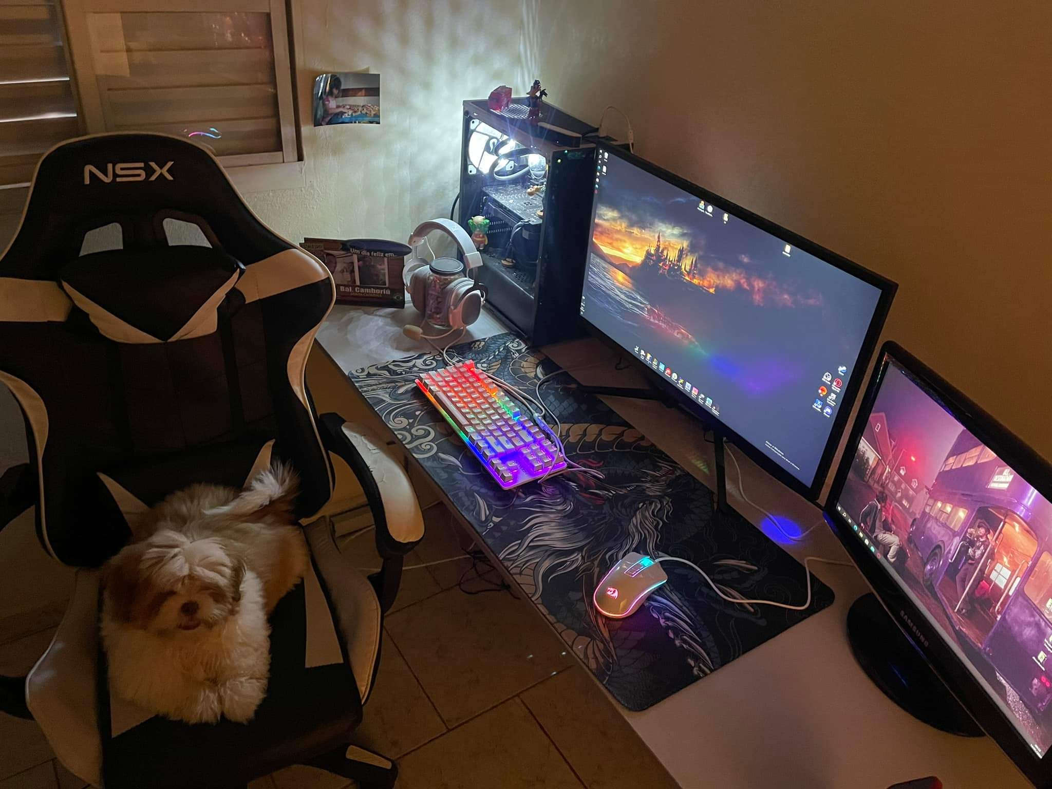 Ours is a sectional. I will be laying on one side of the sectional and the dog will come and sit on the floor beside me and stare at me with sad eyes until I move to the other side of the sectional so she can take the warm side.