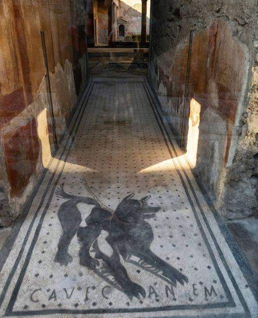 This famous mosaic at the entrance of a house in Pompeii reads: “Cave Canem” which means “Beware of the Dog” and was preserved to the present day by the explosion of Mount Vesuvius. Roman Imperial Period, 79 AD.