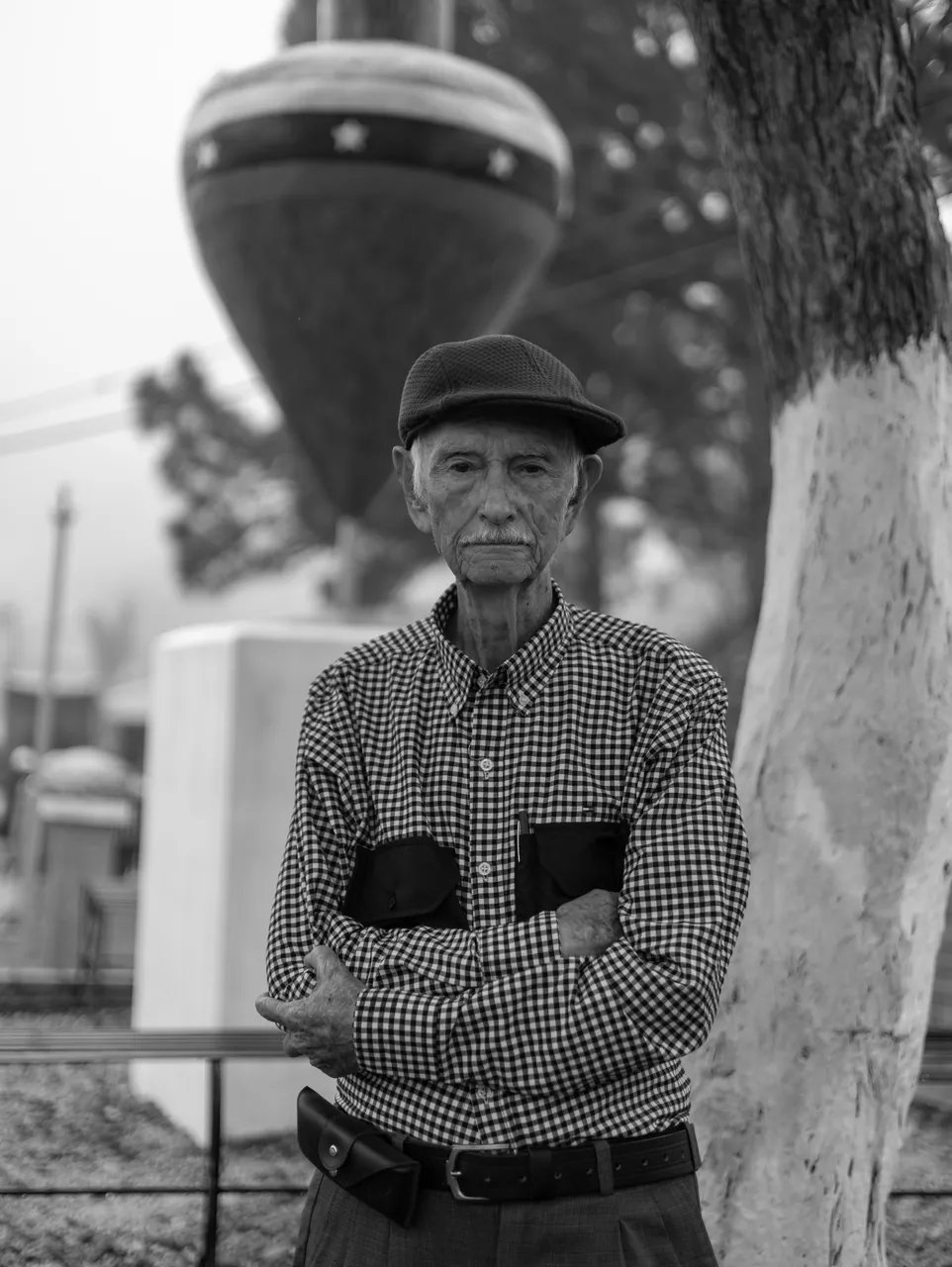 I really liked this photo because the man was sitting under a tree, next to the statue of the spinning top and there was a cross in the background. There was a very interesting composition with good depth.