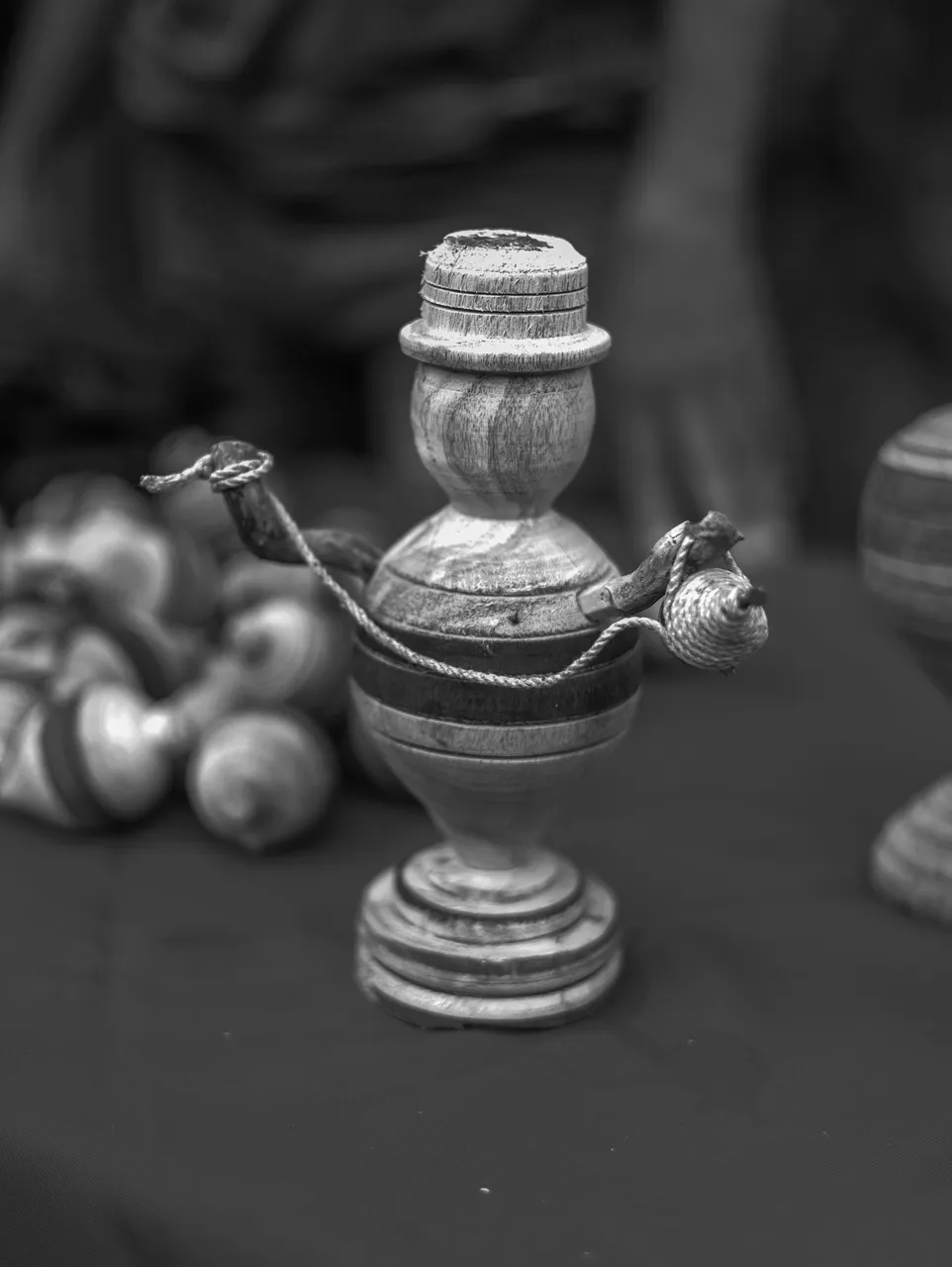 For example, this man is known in town as the king of the spinning top. He's the one who has handcrafted 90% of all the spinning tops that exist in this town.