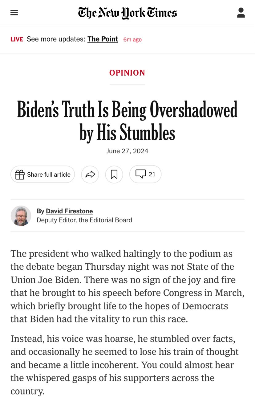 when you hear Biden talk like that you have to wonder what he's like if he hasn't been pumped full of drugs? you can only feel sorry for him. It's also really cool that most people were surprised after the live broadcast about the state of mind of this man. The media once again managed to defend a fake story and build up that this man is a normal politician, perfectly healthy and fit.