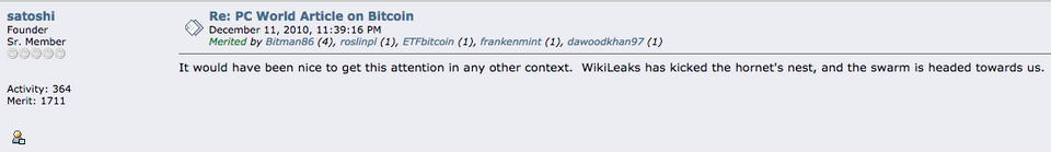 Assange called Bitcoin "the most interesting intellectual development on the Internet in the last five years."