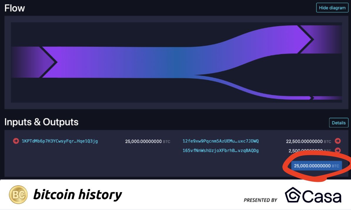 He saw a transaction of 25,000 Bitcoins leaving his wallet.