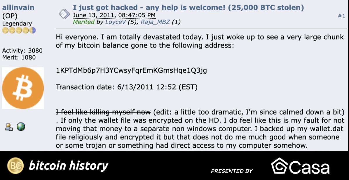 Another reminder that when holding Bitcoin, personal security is crucial.