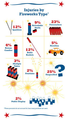 Here is percentage of various types of accidents by Fireworks!!Here is percentage of various types of accidents by Fireworks!!