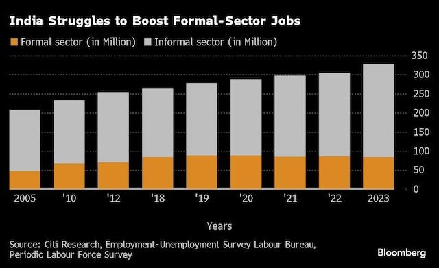 Also, fewer people are employed in the formal sector now than before Covid — the share was 25.7 per cent in 2023, the lowest level in at least 18 years, Citi said. Only 21 per cent of the workforce — or about 122 million people — in India have jobs that pay a salary or wages, compared with 24 per cent before the pandemic. More than half of the 582 million workers in India are self-employed, the figures show.