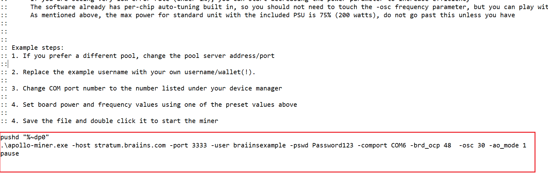 -pswd = password for your Braiins login. I'll use "Password123" for now.