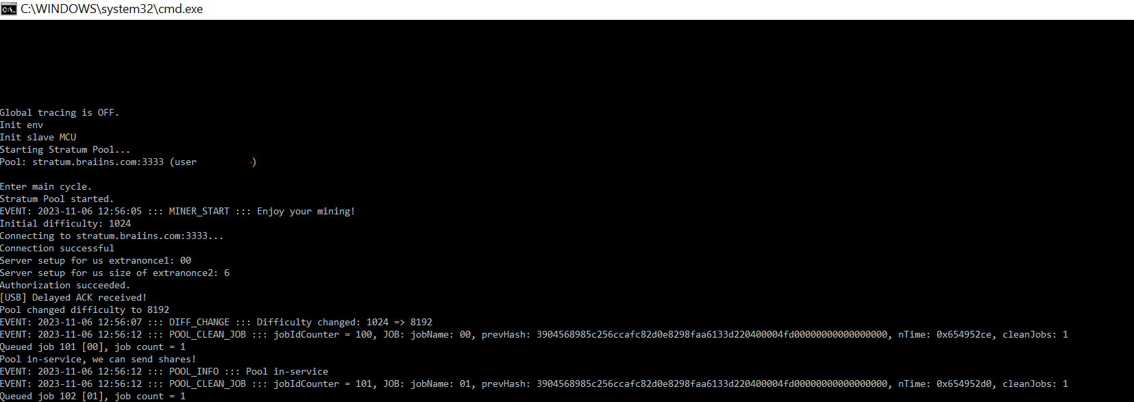 You are now mining! The setting we use run the Unit ins 'eco mode', which should yield 2 terahash per second in terms of mining power (you can monitor the performance from your respective mining pool dashboard). As long as you keep this terminal window open and the computer on that is connected to the miner, and you will be mining away :)