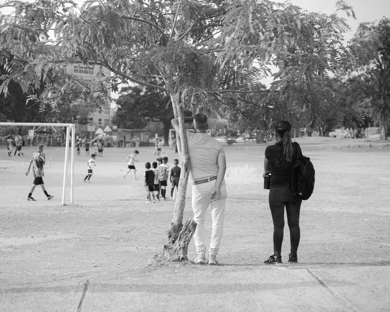 Or these parents who were under the shade of a tree watching their children play soccer.