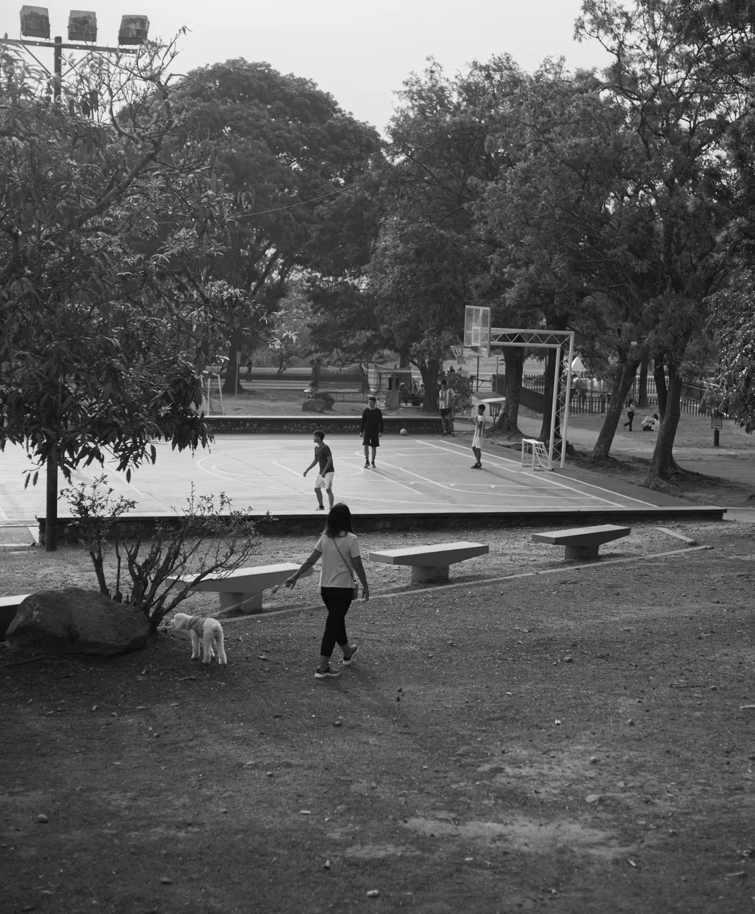 From the top of the park I saw a woman sitting in the distance and I wanted to take a picture of her using the trees as a composition: