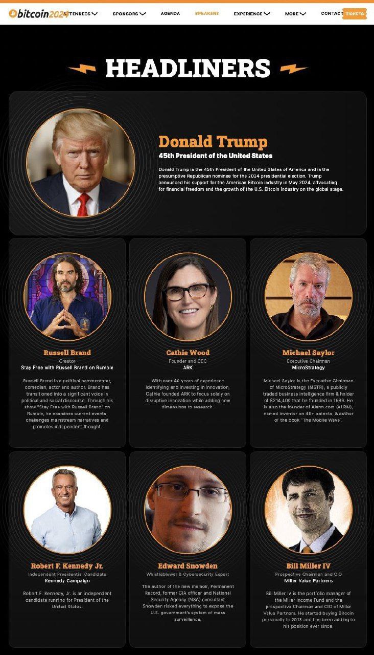 🔴 Former and current US Presidential candidate Donald J. Trump will speak at the #Bitcoin 2024 conference in Nashville on July 27.