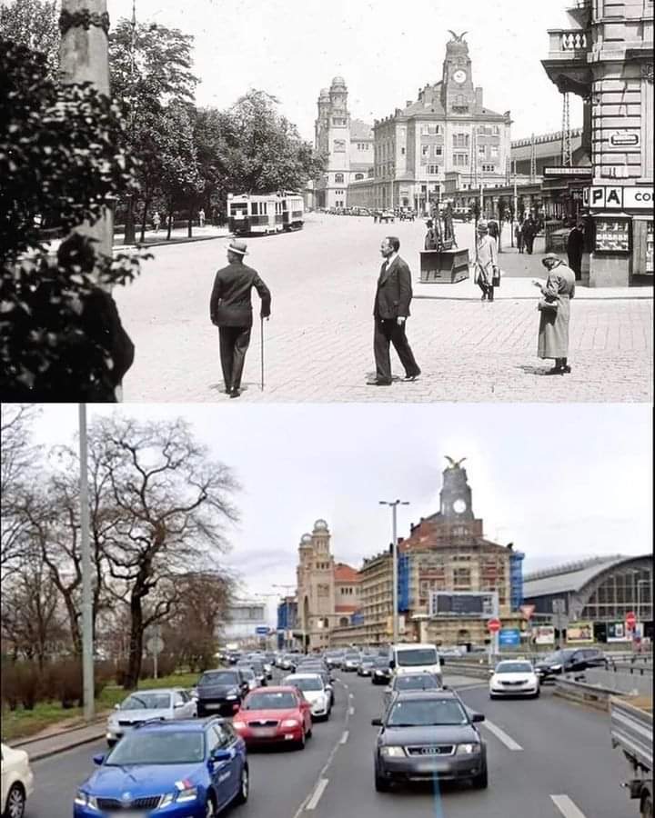 Prague Main Train Station, 1910s and today.