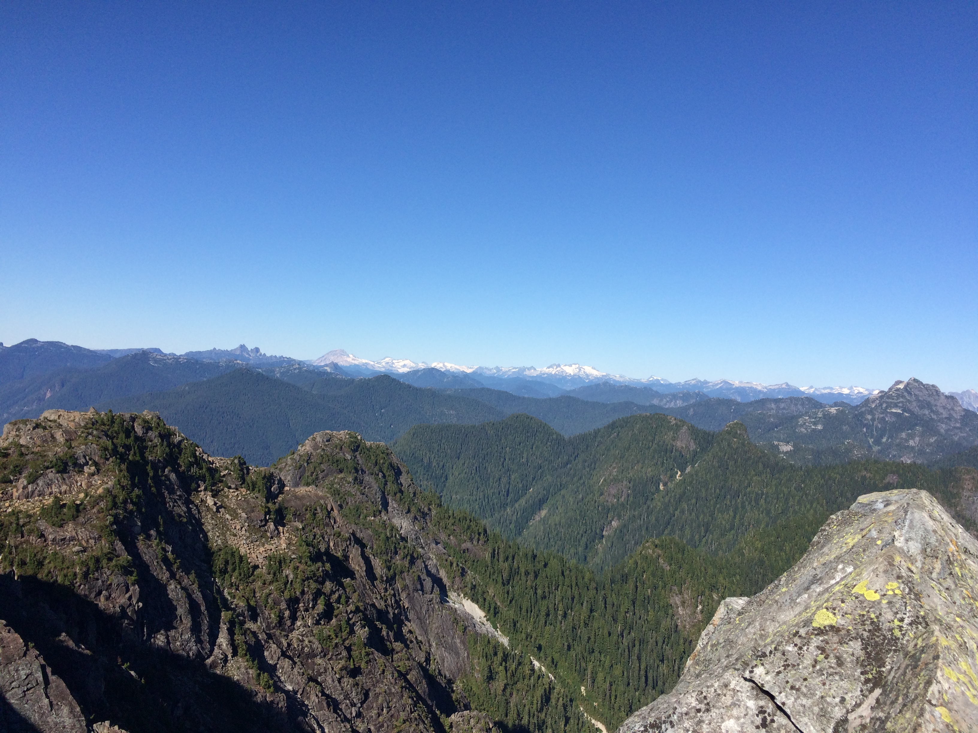 https://m.stacker.news/39760Views to the South at the peak. You can clearly see Washington State's Mount Baker. As well, the Port Mann Bridge and the Eastern part of Greater Vancouver are also visible.