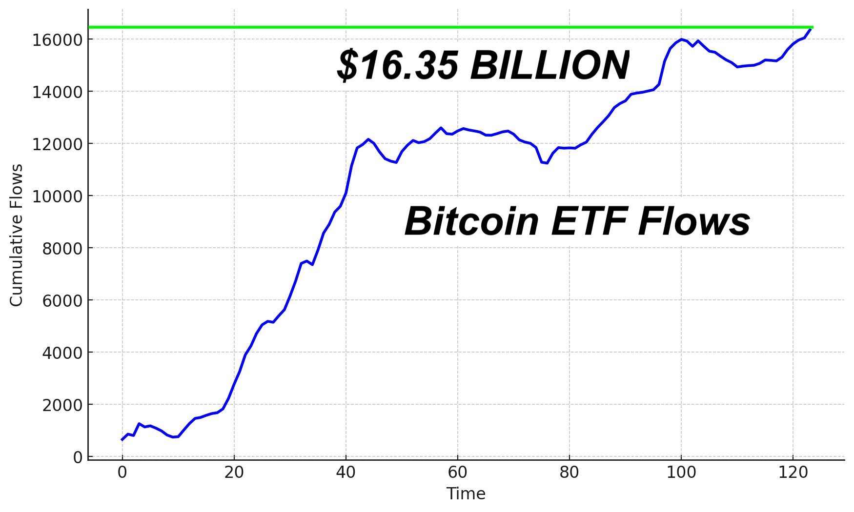 The Bitcoin ETFs have achieved a new all-time high for total inflows, reaching $16.35 billion since their launch in January.