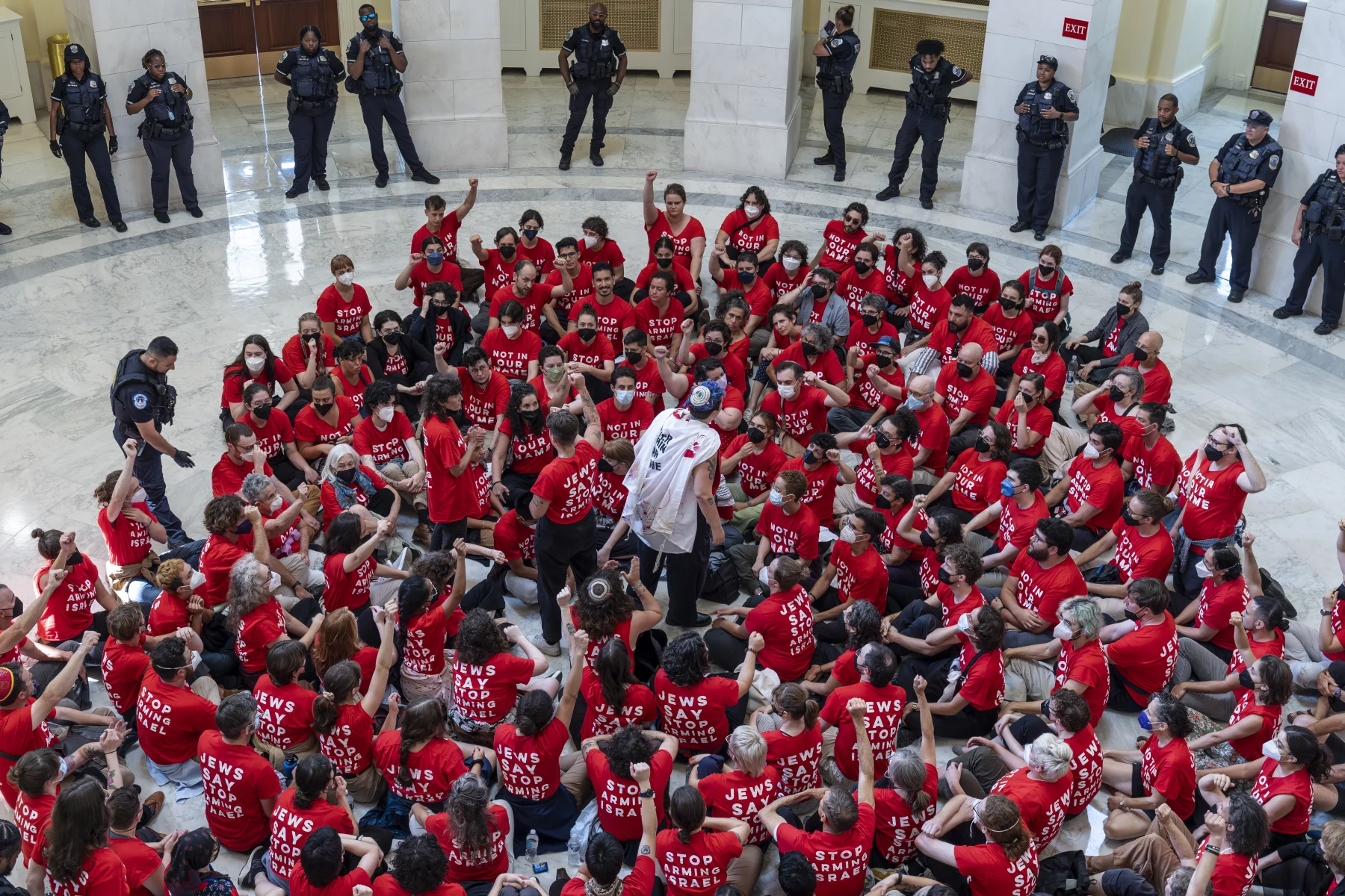 Mitchell Rivard, chief of staff for Rep. Dan Kildee, D-Mich., said in a statement that his office called for Capitol Police intervention after the demonstrators “became disruptive, violently beating on the office doors, shouting loudly, and attempting to force entry into the office.”