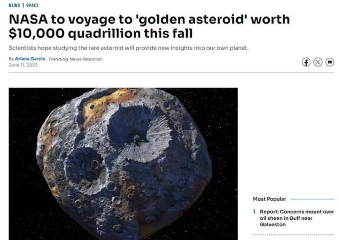 I added that to the title because my theory is that NASA is using that as a excuse to stay relevant, money talks and an asteroid with a previous mineral in abundance for sure bring to the financing table lots of fat pockets looking to profit further from it, thus, a win win, funding for new rockets and tech in exchange for mining asteroids, this shall be fun to watch...
