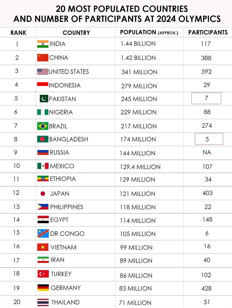 It's really looking very bad for some highly populated countries. May be they need to work on their sports infra!