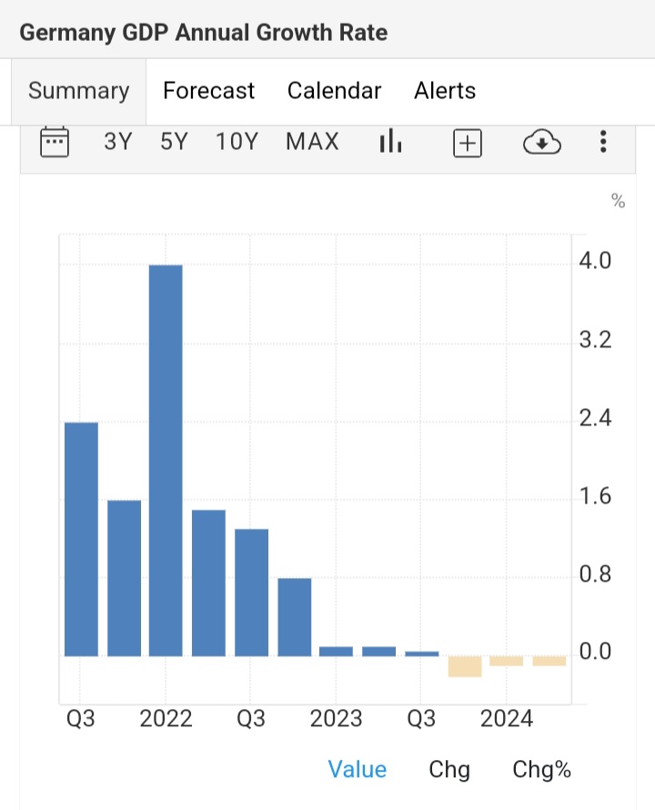 they have said several times in Germany that they no longer want certain forms of industry in the country, so this de-industrialization and recession comes as no surprise