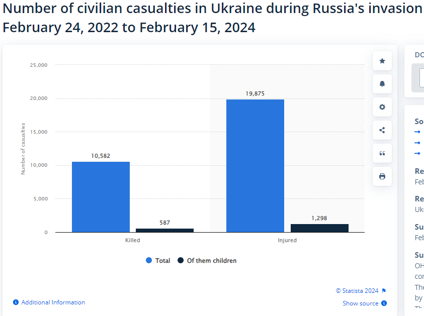 In the Iraq War, civilian casualties stand between double and six times those of the Ukraine war. Afghanistan has similar numbers.