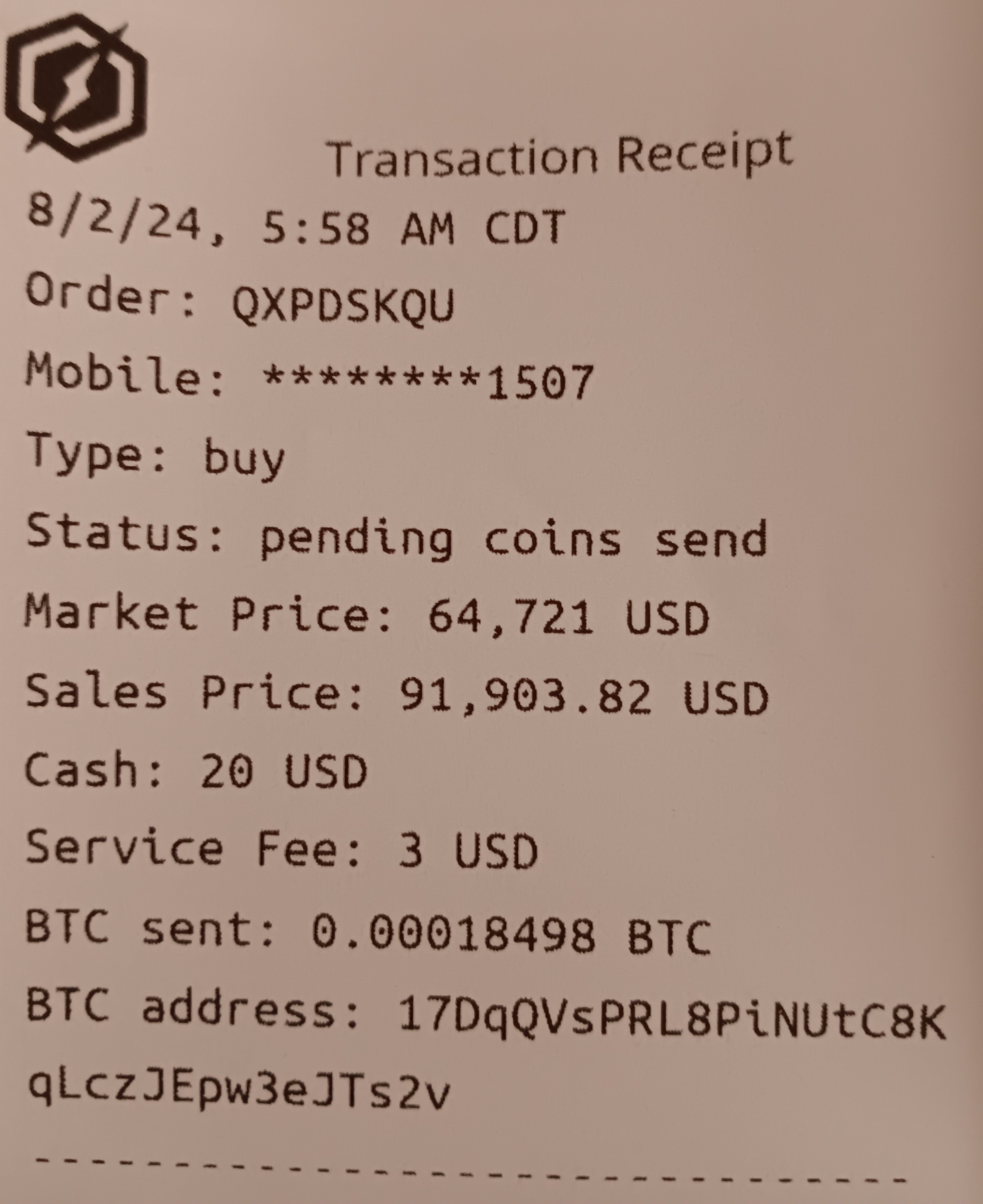 Well, it was just an experiment since I have never used a bitcoin atm.