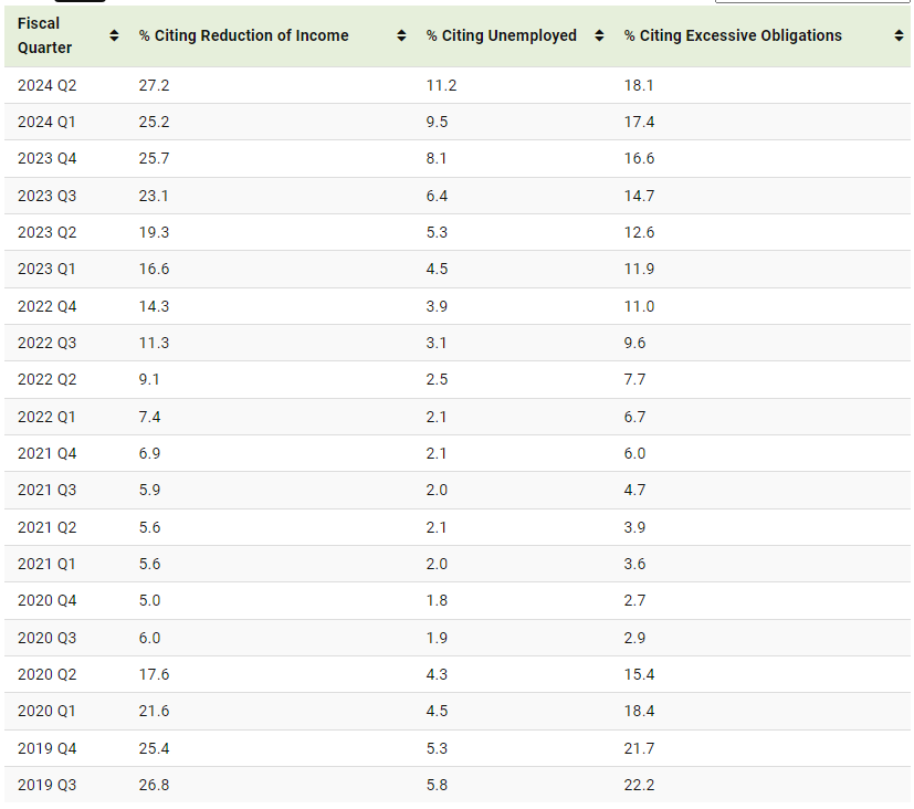 This graphic shows the financial reasons that Americans can’t pay their mortgage in 2024, based on data from the U.S. Department of Housing and Urban Development.