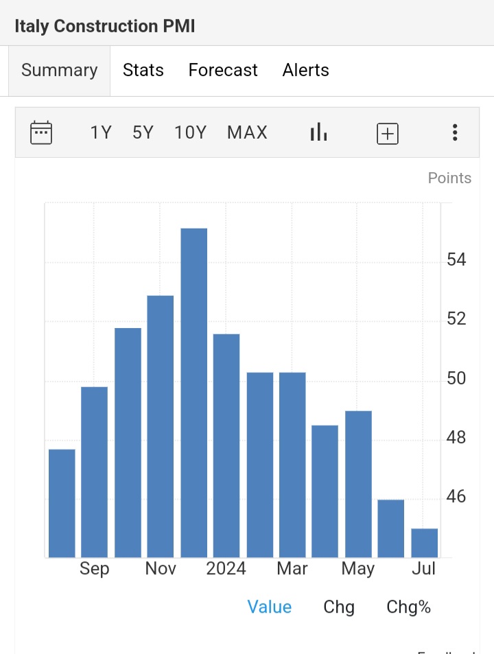 The Eurozone is slipping deeper into recession, with the construction sector taking a significant hit. Overregulation, misguided climate policies, and inflated rulebooks are pushing developers away, exacerbated by rent controls and similar measures. France and Germany are the primary drivers of this downturn, dragging the overall index down.