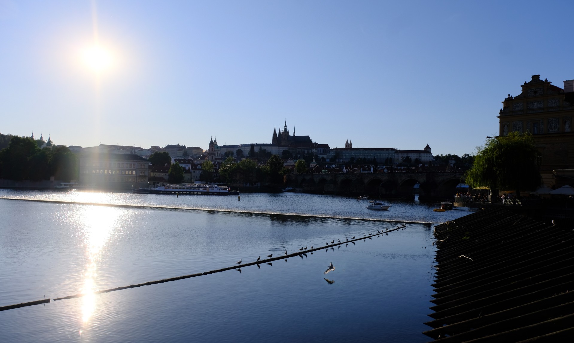 looking to Hradčany at evening from Vltava embankment