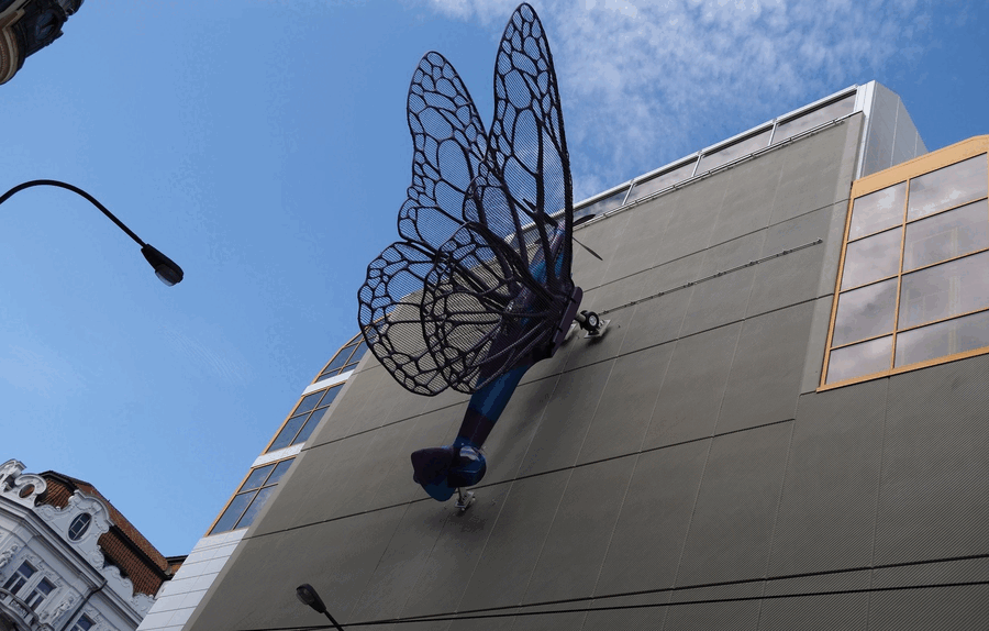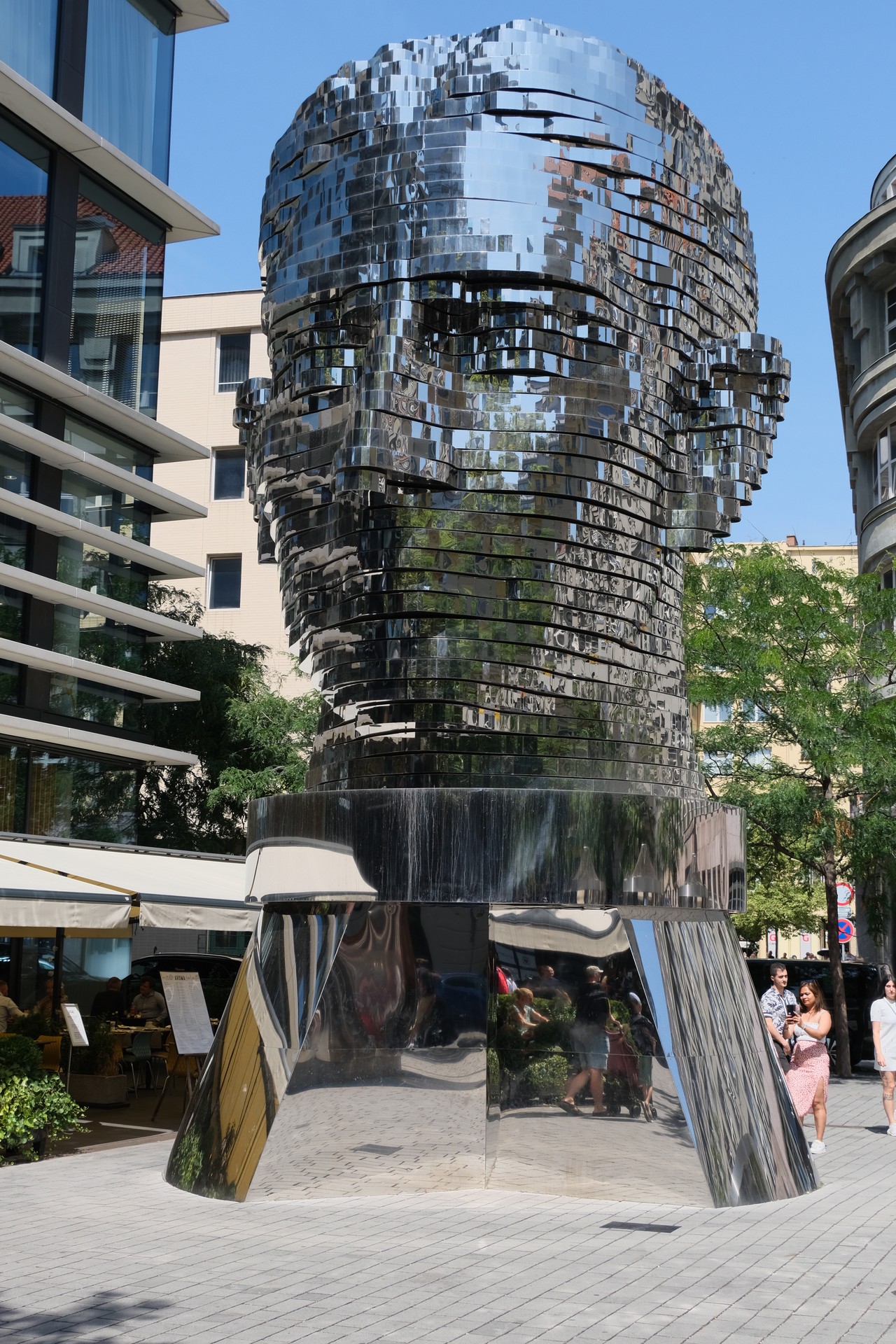 Statue of Kafka is outdoor kinetic sculpture