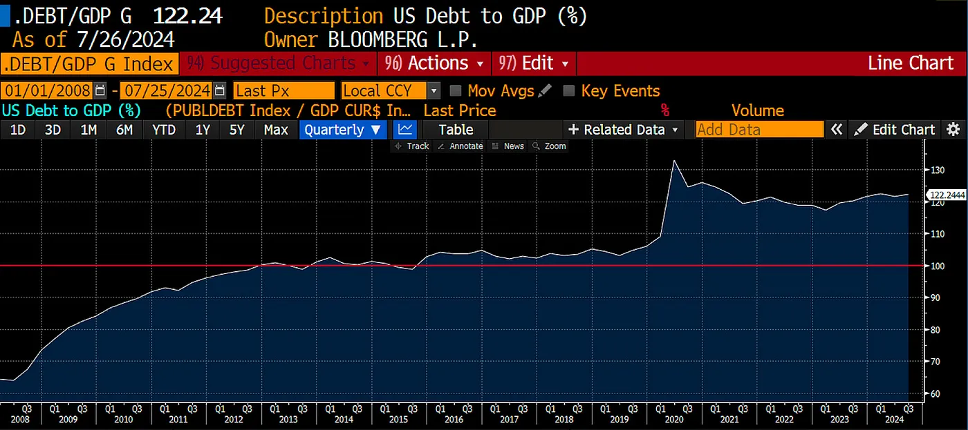 The US election occurs in early November. Yellen will be at peak manipulation in October. There will be no better time for liquidity this year. Therefore, I shall sell into strength. I will not liquidate my entire crypto portfolio but take profits in my more speculative momentum trades and park the capital into staked Ethena USD (sUSDe). The crypto market trades up, increasing the odds of a Trump victory. Trump’s probability of victory peaked right after the assassination attempt and Slow Joe’s disastrous debate performance, Kamala Harris is a first-class political muppet, but she is not an octogenarian vegetable. That’s all she needs to defeat Trump. The election is a coin toss, and I would rather watch the chaos from the sidelines and step back into the markets AFTER the US debt ceiling is raised. I expect that to happen sometime in January or February.