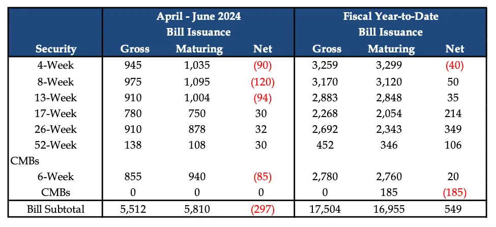 Why have crypto risk markets traded sideways to down since April of this year? The majority of tax receipts occur in April, which necessitates lower borrowing by the Treasury. We can observe this in the number of T-bills issued between April and June.