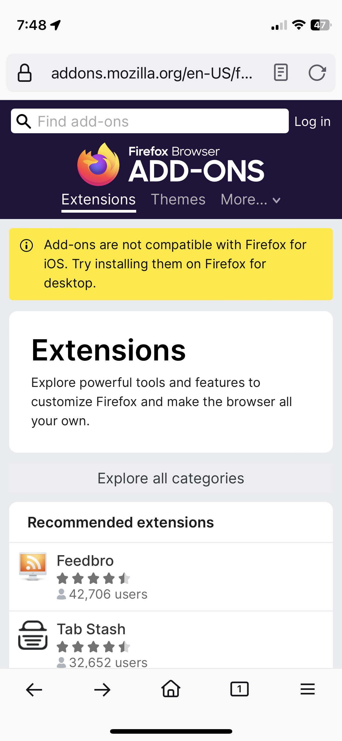 I wish, but no. Just checked but still no extensions for firefox on ios