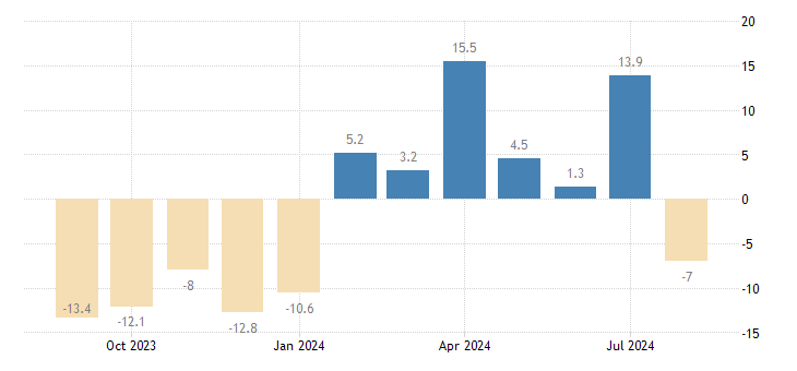 The Philadelphia Fed's Manufacturing Index dropped to -7 in August 2024, down from July’s 13.9 and missing expectations of 7. This marks the first contraction since January, with declines in shipments, new orders, and employment turning negative. Despite relatively stable labor market data, inflation remains a concern with rising prices paid and slower price growth received. These mixed signals suggest the Federal Reserve is less likely to proceed with a 50 basis point rate cut.