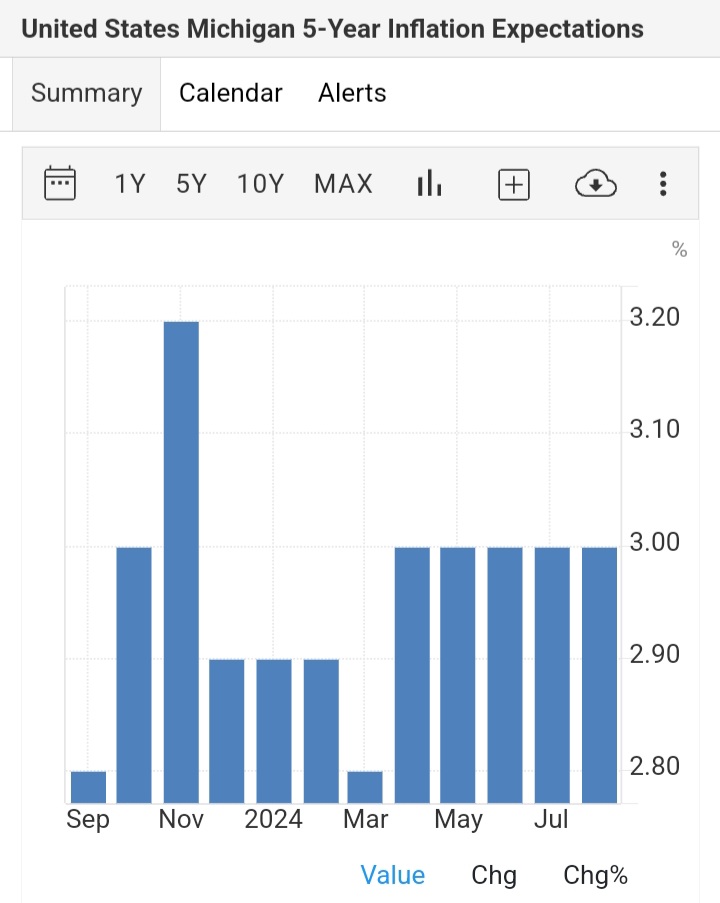 Similarly, the five-year inflation outlook remains unchanged at 3%, maintaining a stable trend in an otherwise unpredictable economic landscape.