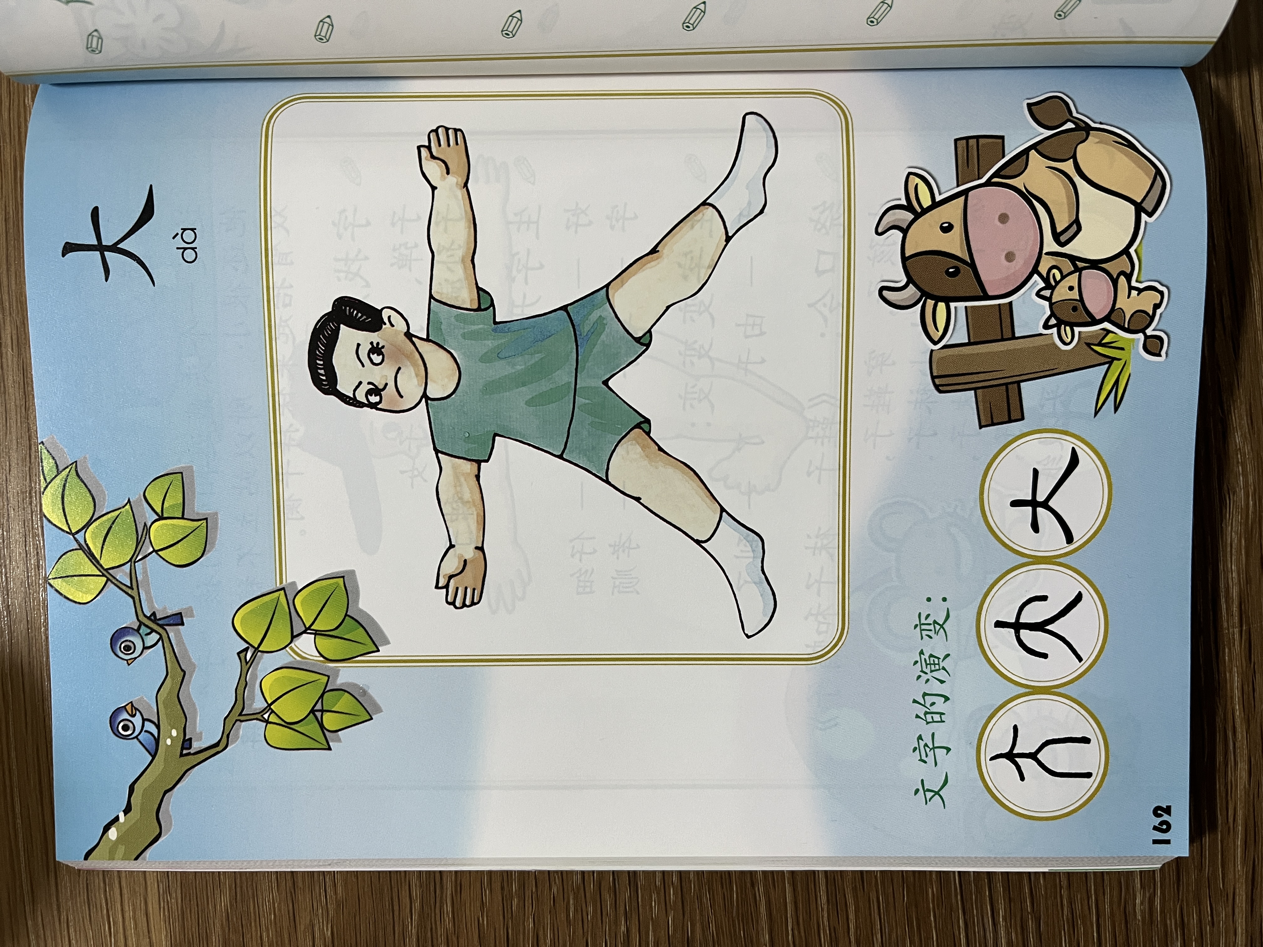 You can see that 大 resembles a majestic-looking person standing with his arms and legs spread out wide. Ancient people considered themselves to be the master of all sentient beings. This may account for the open body language; that’s why 大 means big.