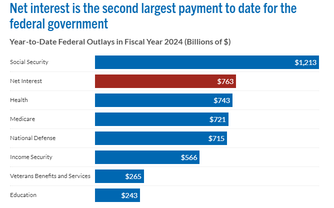 The US will add another $2 trillion to the total debt this year, and the US is now spending a trillion of your dollars on interest per year. There is no end in sight.