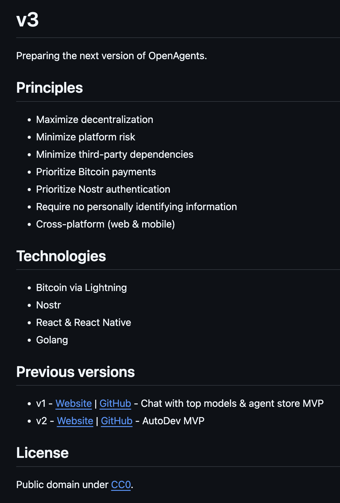 We're starting now on a more decentralized v3 which will be built in public and 100% open-source under CC-0 👉 https://github.com/OpenAgentsInc/v3