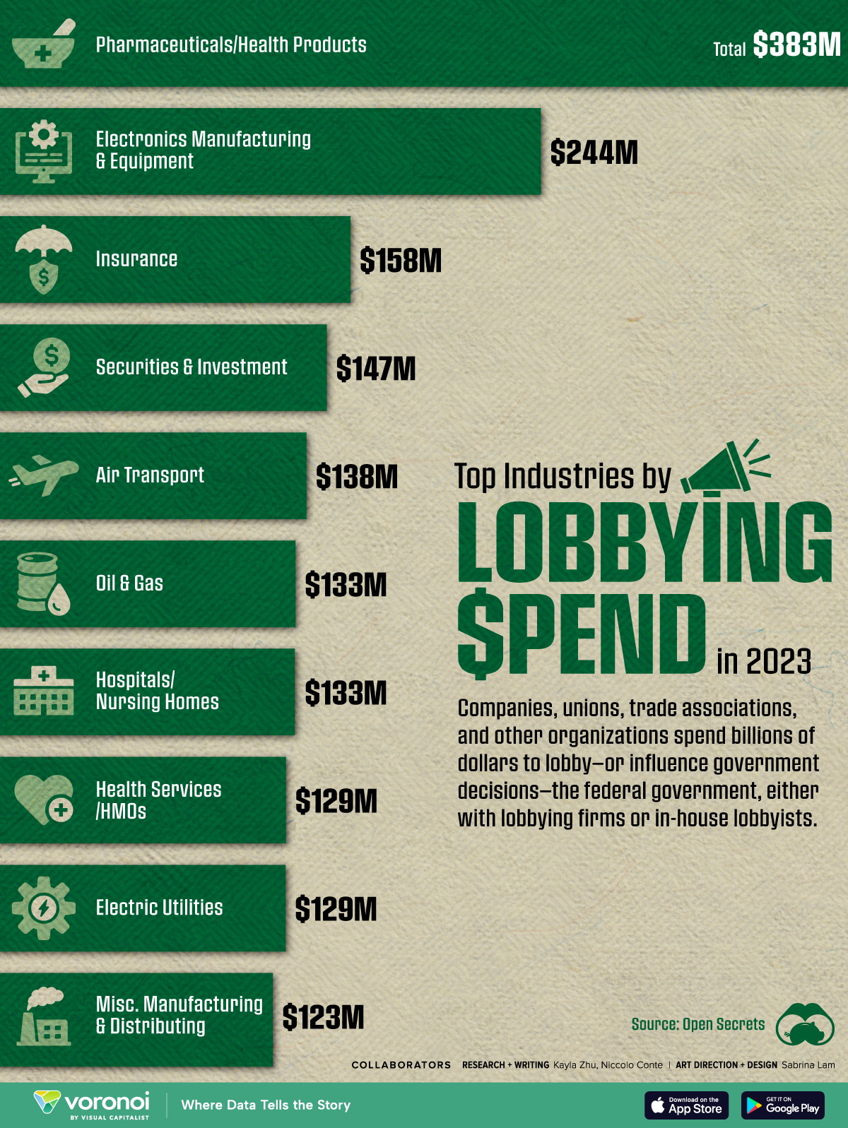 Pharma spent $383 Million on lobbying in 2023.