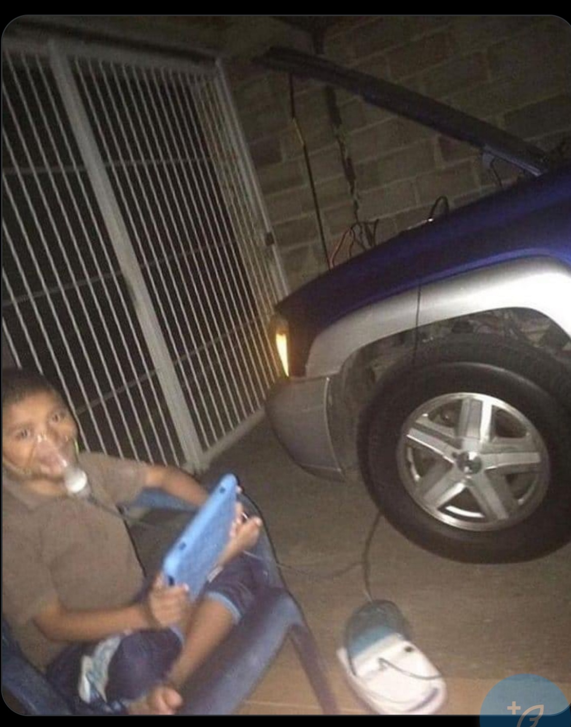 This photo is from 2019, a child with his nebulizer connected to the car battery, why? Because of the national blackout.
