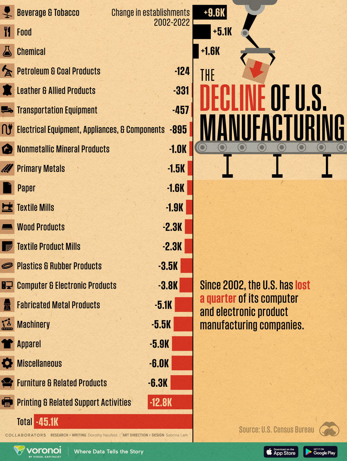 Visualizing the Decline of U.S. Manufacturing, by Sector (2002-2022)