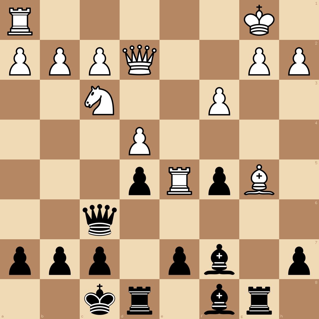 1.e4 g6 2.d4 f5 3.exf5 gxf5 4.Nc3 d5 5.Nf3 Nf6 6.Bd3 Be6 7.O-O Qd6 8.Re1 Ne4 9.Ng5 Bf7 10.f3 Nxg5 11.Bxg5 Rg8 12.Qd2 Nc6 13.Bb5 O-O-O 14.Bxc6 Qxc6