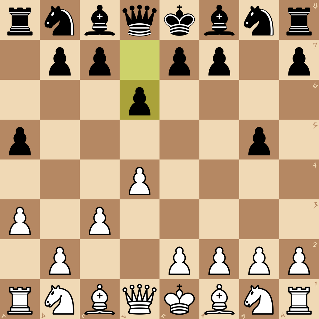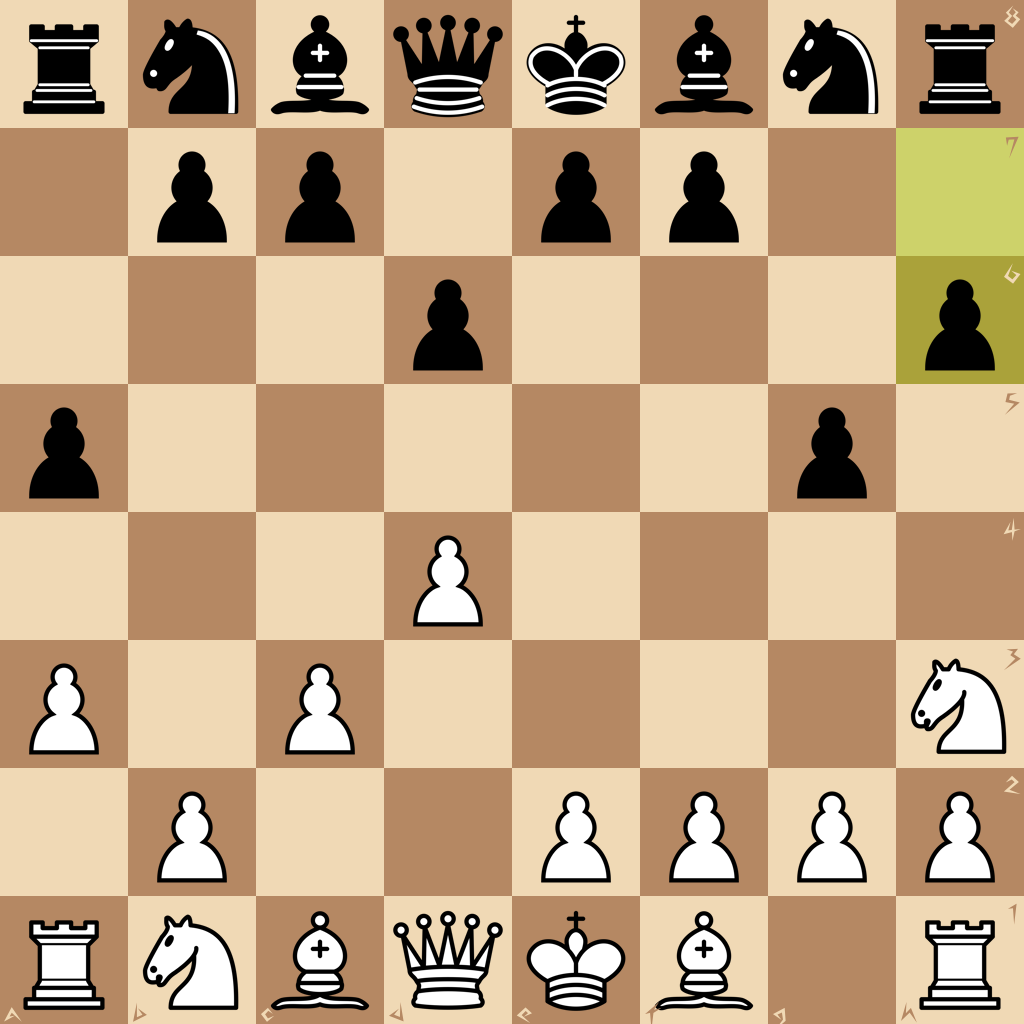 1.d4 a5 2.a3 g5 3.c3 d6 4.Ng1h3 h6