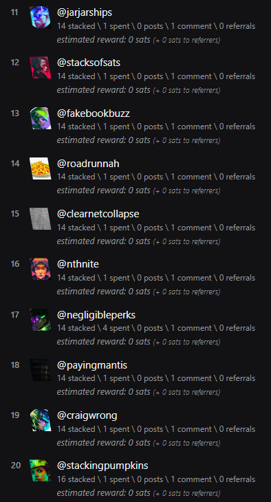 You mean that estimated rewards is 0 sats for them even though they are on the leaderboard? I don’t think this is necessarily a bug, I think it’s just that they get less than a full satoshi.
