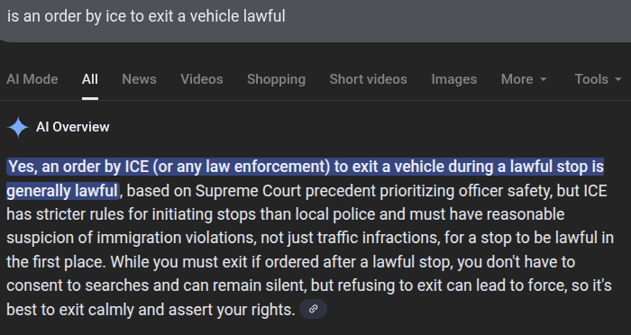 ICE can't do routine traffic stops, which this wasn't, she was beyond a road block in an operational area.