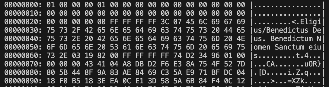 "Eligius/Benedictus Deus. Benedictum Nomen Sanctum eius." -> block 139690